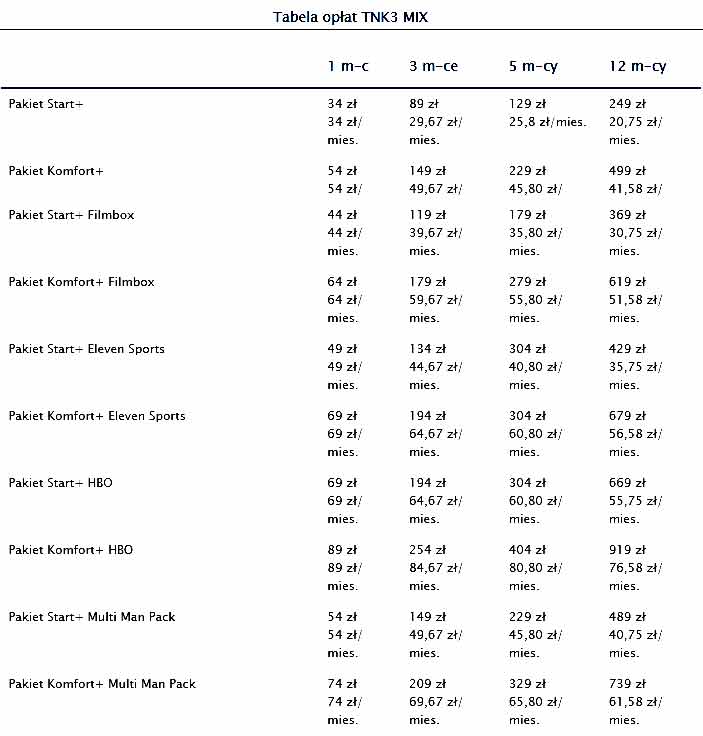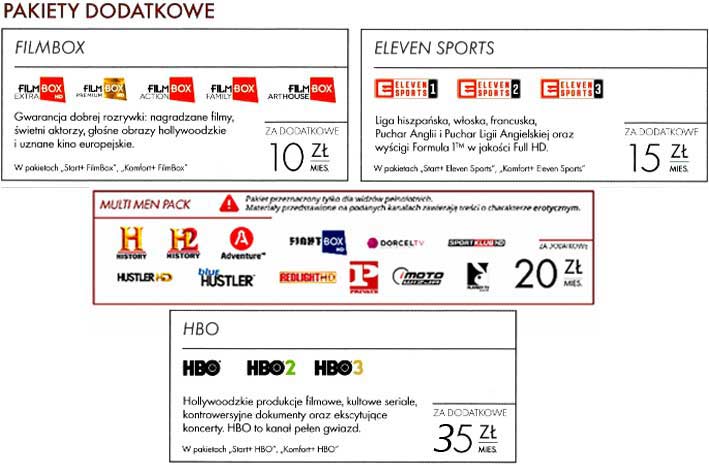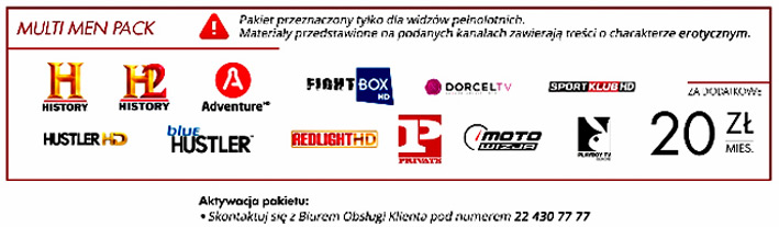 Możliwe jest również uruchomienie pakietu MULTI MAN PACK z kanałami dla dorosłych. Dodatkowy pakiet przy pakietach Start+, Komfort+ - koszt to dodatkowe 20zł.
