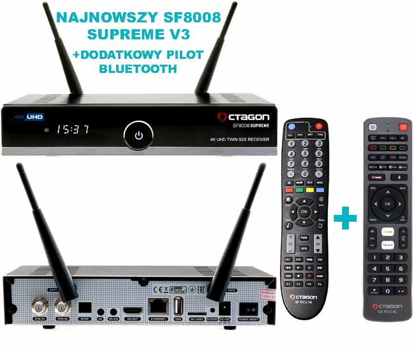 OCTAGON SF8008 V3 SUPREME TWIN UHD 4K (2 X DVB-S2X MS) + DODATKOWY PILOT BLUETOOTH.